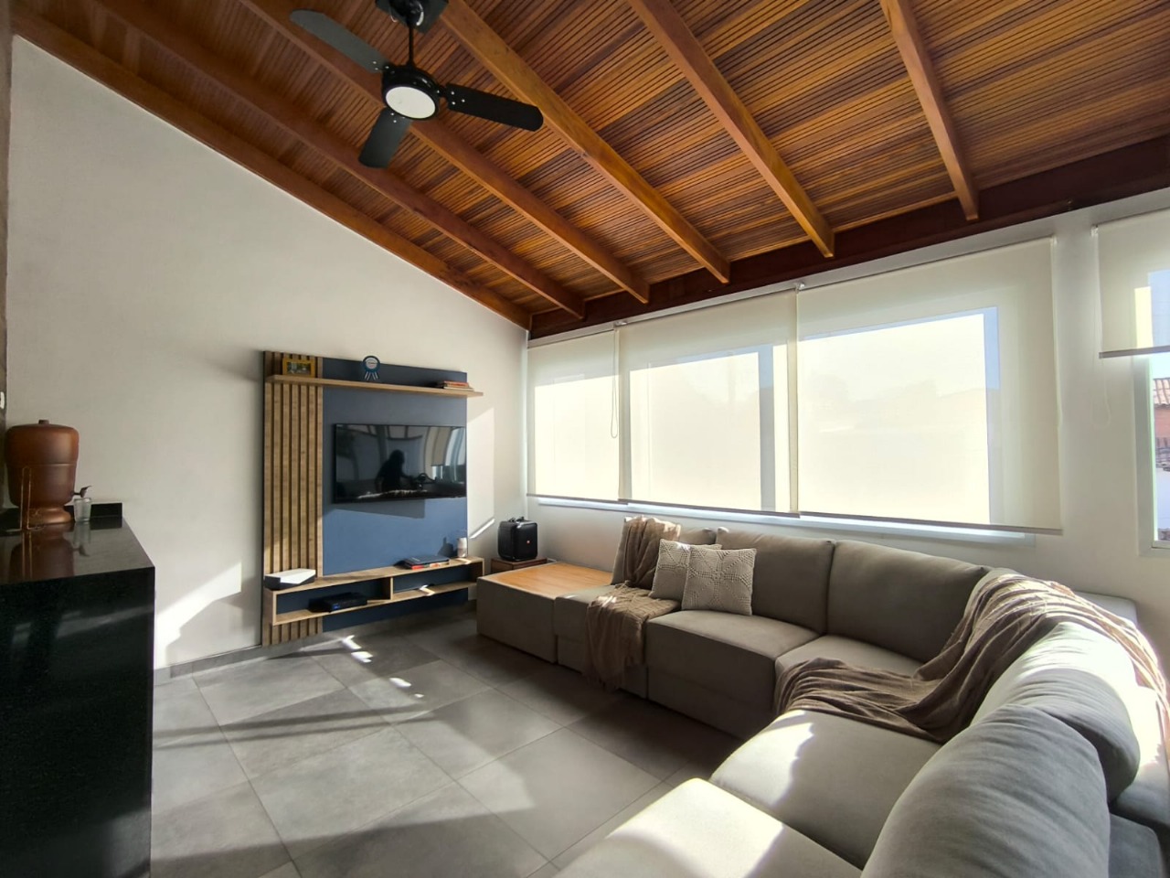 ✔️ Sala ampla com ótima iluminação natural e painel para TV
